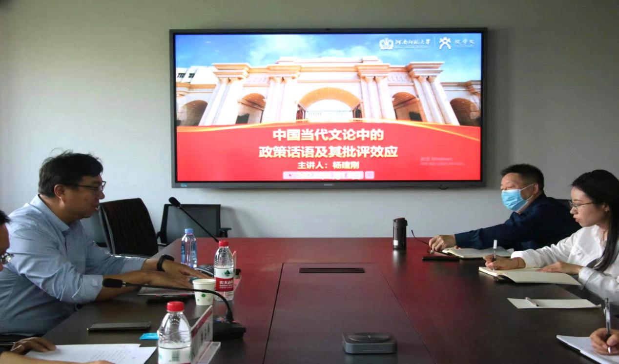 杨建刚指出,文艺政策是一个国家从制度层面去宏观调控、管理与规范文化艺术事业,借以进行意识形态建构、文化领导权掌控与文化治理的重要方式,中国当代文论和批评的建构过程呈现为从“以苏为师”到“自主探索”的模式。从中国社会在关键时刻的重大变革与文艺政策的重大调整出发,他将中国当代文论的发展从宏观上划分为四大阶段,并就四种相应的主导性文学观念进行深入分析。杨建刚强调,中国当代社会不同阶段的主要矛盾与时代主题催生出了不同的文学观念,这些文学观念通过文艺政策、理论与批评的互文关系而得以形塑与表征,但并不意味四个发展阶段的文艺观是串珠式的链接。他表示,文艺政策本身不是对文艺的学术性讨论,而是从国家治理的角度对文艺所做的规定,其话语中饱含着丰富的“政治语句”与“权力关系”。在讲座互动环节中,杨建刚就“中国当代文论发展阶段划分的内在逻辑”“研究作家的比较方法”“文学是否从属于政治”等问题作了详细解答。