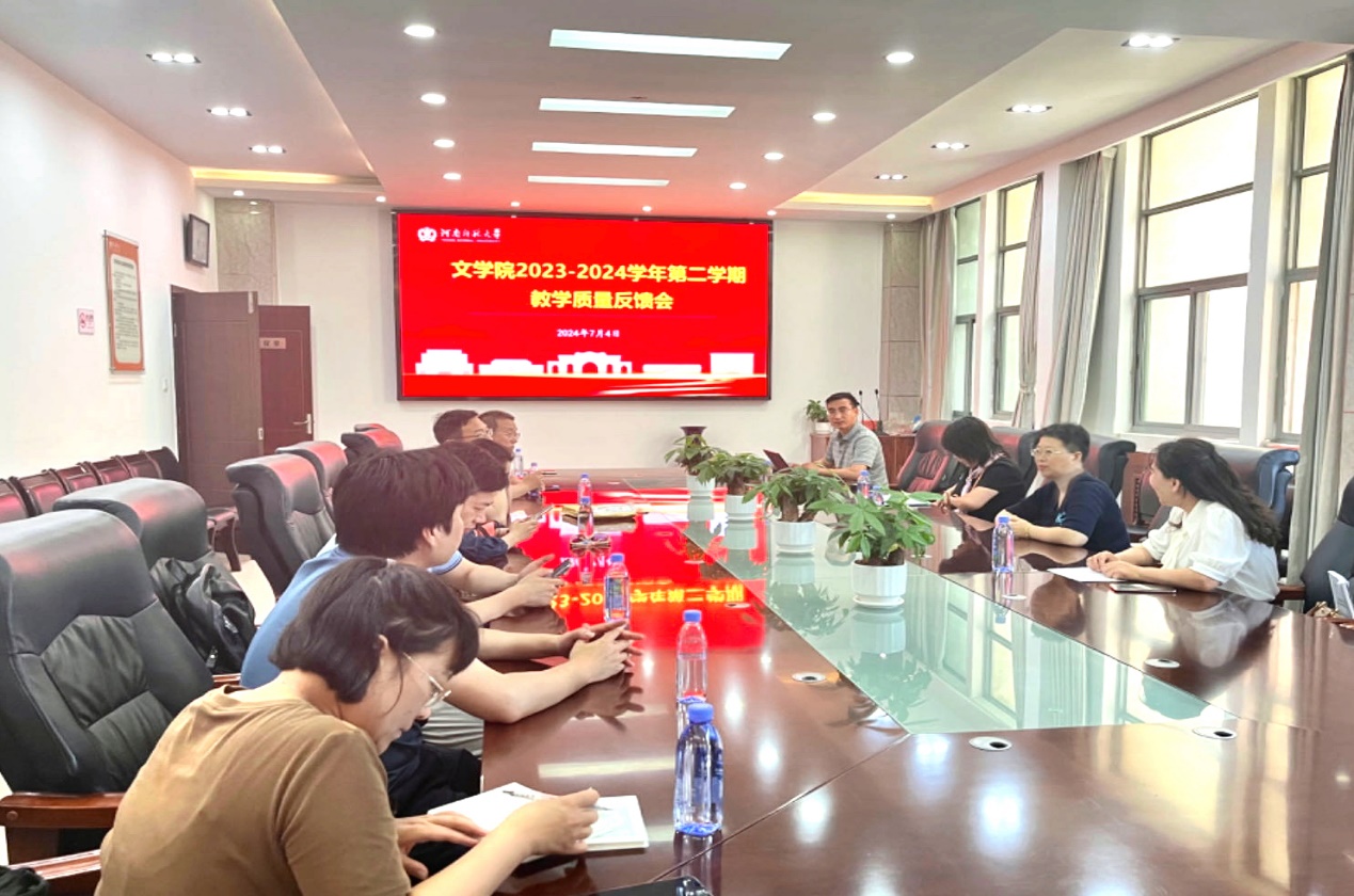 7月4日下午,文学院在崇文楼二楼会议室召开2023-2024年度第二学期期末教学质量反馈会。校督导周芳、马小能,文学院院长赵黎波,教研室主任及教师代表参加会议,会议由文学院副院长周惠主持。