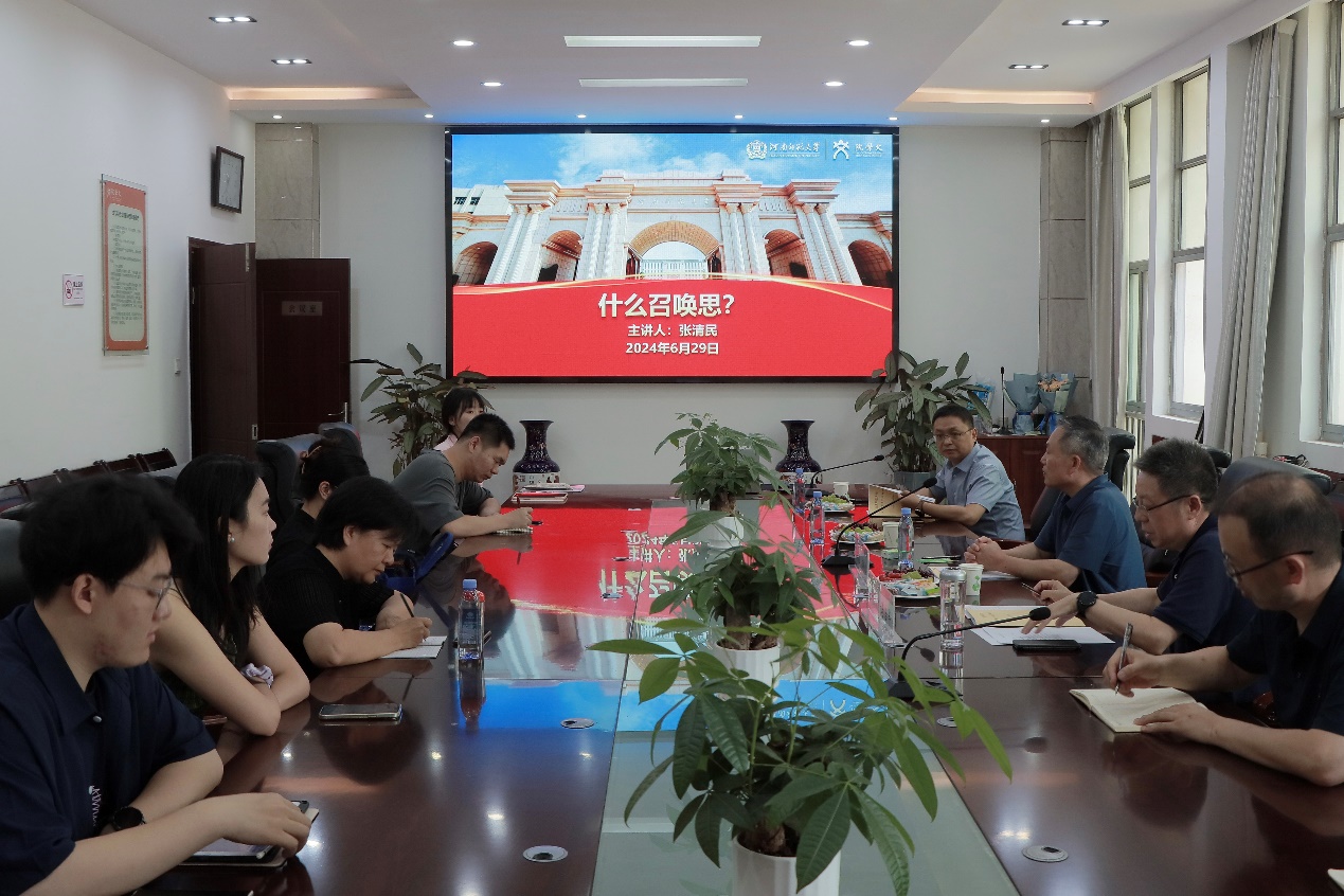 629日上午,河南大学张清民教授应邀做客“卫风讲堂”,在崇文楼二楼会议室为文学院师生作题为“什么召唤思”的学术讲座。讲座由文艺学教研室马治军教授主持,学院师生积极参加学习。