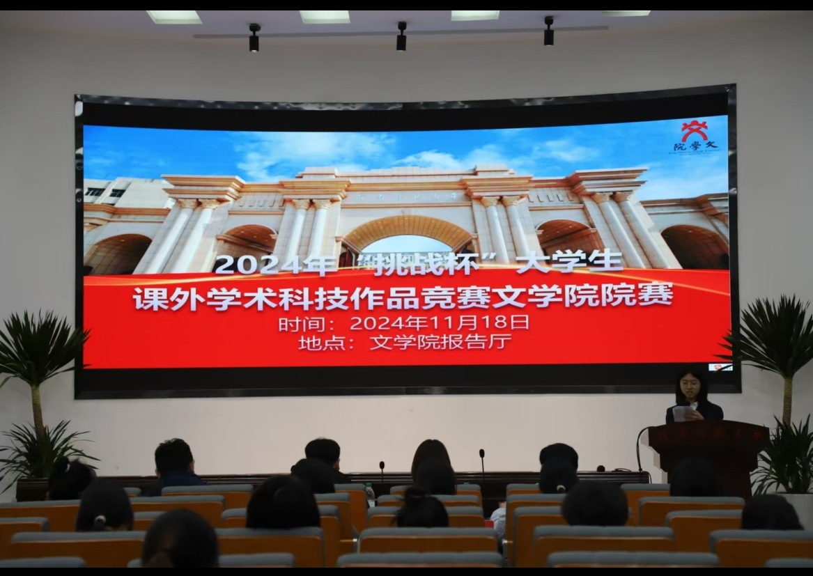 为鼓励学生培养创新意识,提升学生创新能力和综合素养,11月18日上午,文学院在崇文楼一楼报告厅举办伟德官网下载苹果版2024年“挑战杯”全国大学生课外学术科技作品竞赛院赛。院创新创业工作秘书王晓丽、文艺理论教研室常磊、语文课程论教研室李耀伟、学院团委负责人陈光裕担任评委,比赛由2024级汉语言文学专业李婉如主持。