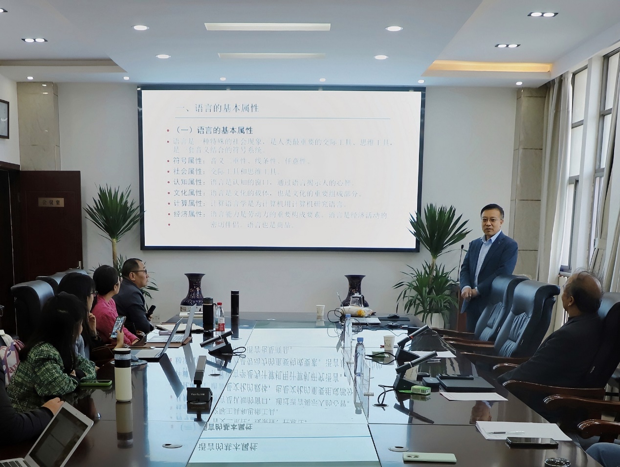 321日下午,首都师范大学史金生教授应邀做客“卫风讲堂”,在崇文楼420会议室为文学院师生作题为“基于语言交际属性的汉语语法实施挖掘和理论探讨”的专题讲座。讲座由文学院崔应贤教授主持,三十余名师生参加学习。