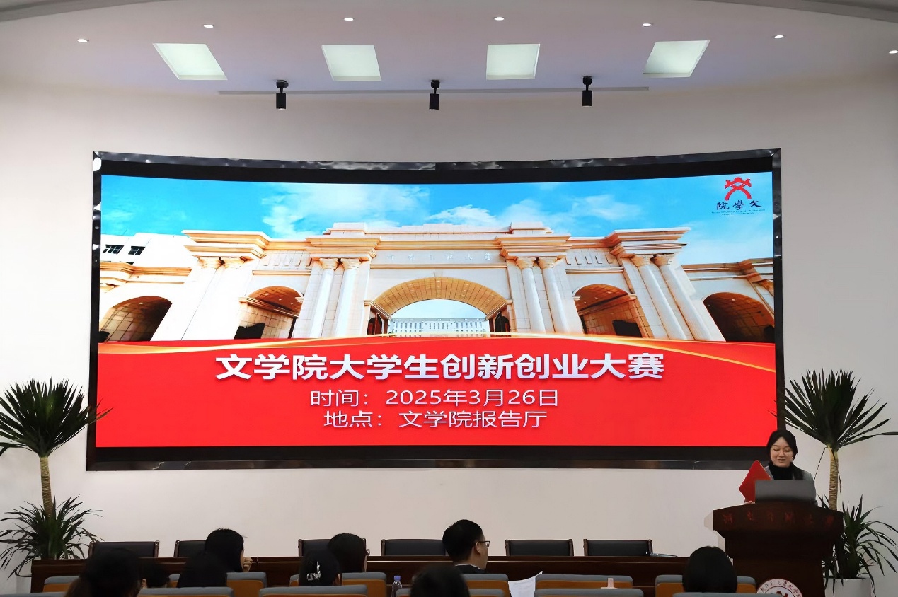 3月26日下午,文学院在崇文楼一楼报告厅举办中国国际大学生创新大赛院级初赛。文学院创业创新工作秘书王晓丽、文学院教师李耀伟、2024级辅导员冯家欣担任评委,比赛由2024级兼职辅导员桑媛主持。