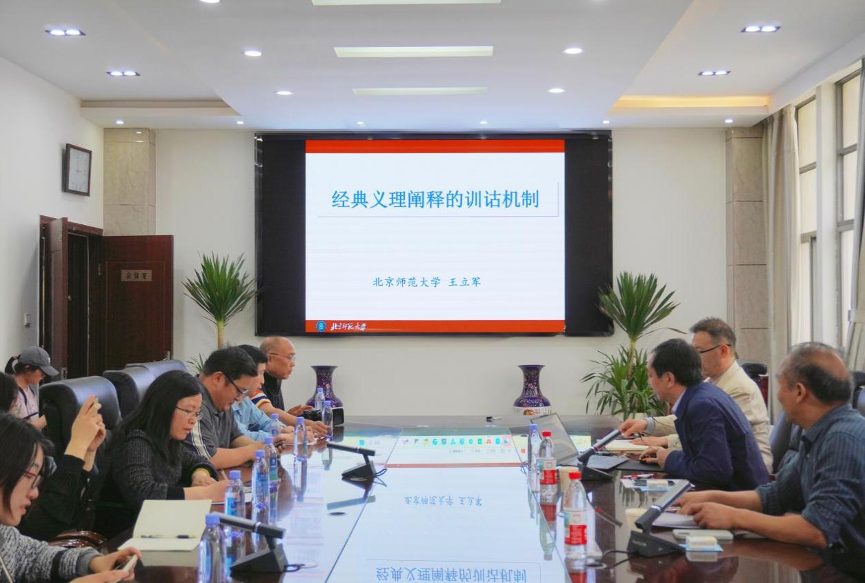 418日下午,北京师范大学王立军教授应邀做客“卫风校友讲坛”,在崇文楼二楼会议室为文学院师生作题为“经典义理阐释的训诂机制”的学术讲座。讲座由文学院教授崔应贤主持,学院师生积极参与学习。