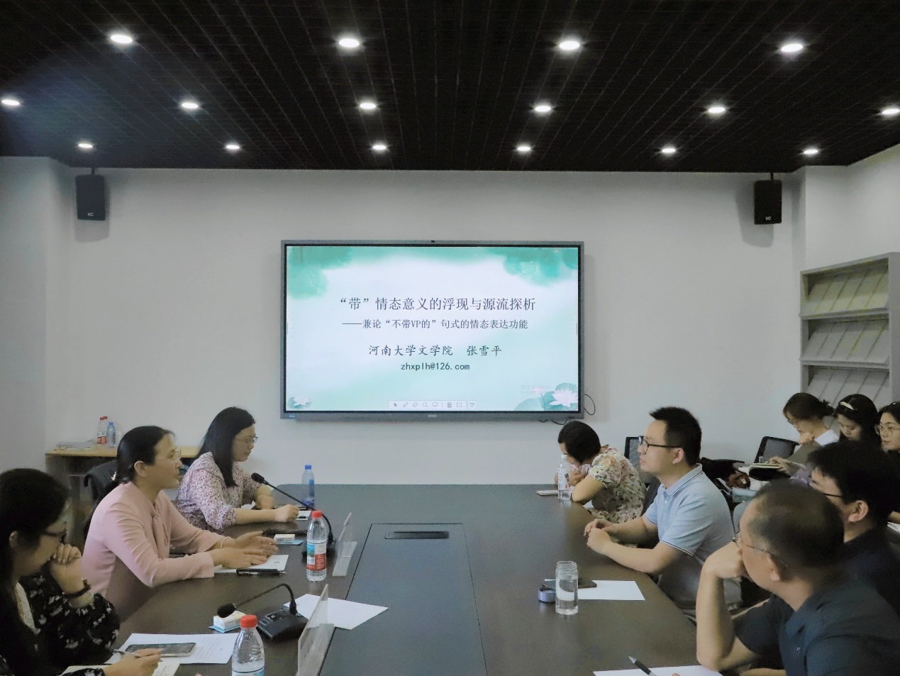 5月19日下午,河南大学张雪平教授应邀做客“卫风讲堂”,在崇文楼四楼420会议室为学院师生作题为“‘带’情态意义的浮现与源流探析”的学术讲座,讲座由文学院副教授刘志芳主持,学院师生积极参与学习。