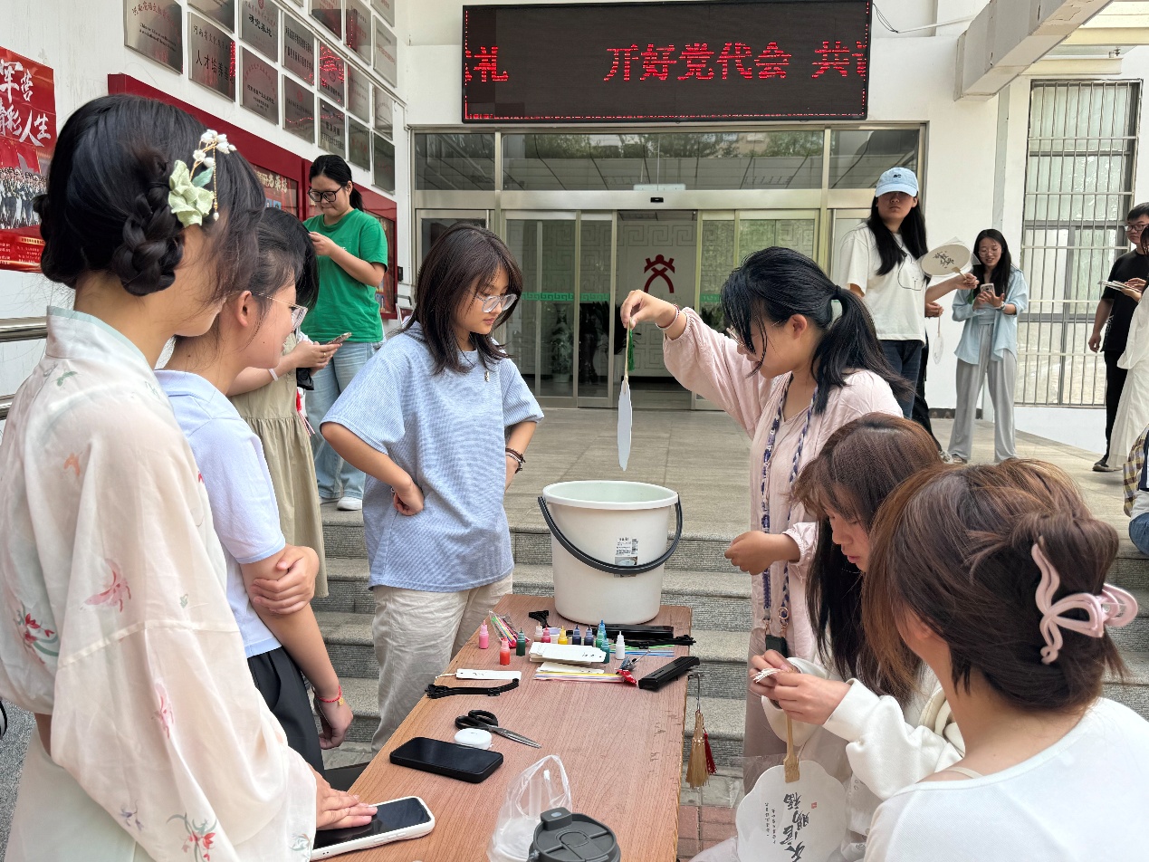 为推动非物质文化遗产保护传承,深化廉洁文化宣传教育,5月18日上午,文学院华夏未央汉服社于崇文楼506教室及报告厅前开展“漆一把廉洁扇”主题漆扇活动,吸引了众多学生踊跃参与。