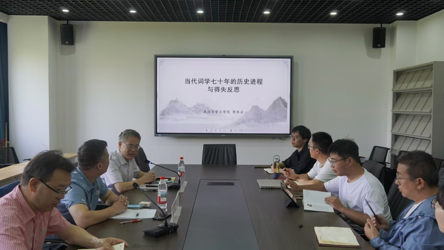 5月29日上午,武汉大学陈水云教授应邀做客“卫风讲堂”,在崇文楼四楼会议室为学院师生为作题为“当代词学七十年的历史进程与得失反思”的学术讲座。讲座由研究生院副院长陈鹏主持,学院师生积极参与学习。