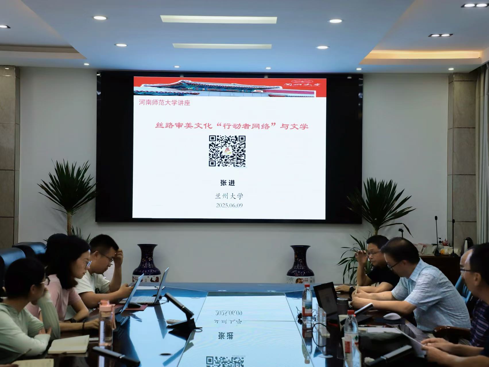 6月9日晚,兰州大学张进教授应邀做客“卫风讲堂”,在崇文楼二楼会议室为学院师生作题为“丝路审美文化‘行动者网络’与文学”的学术讲座,讲座由文学院张富春教授主持。