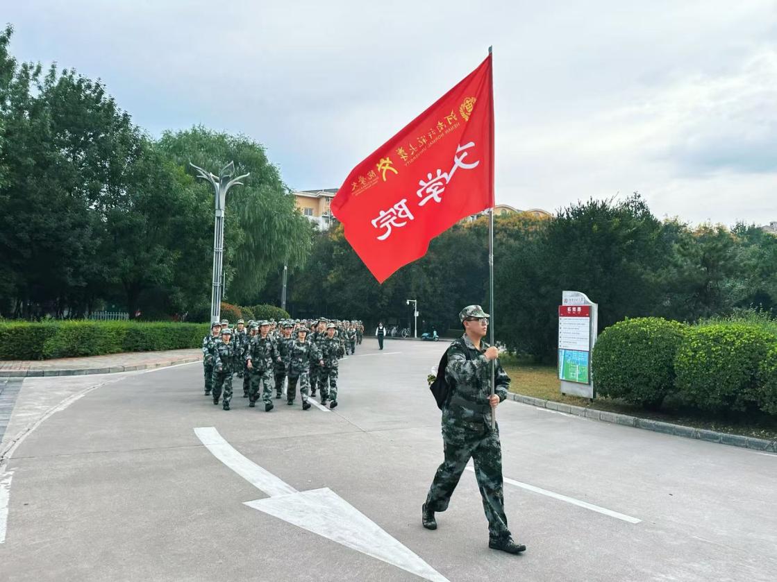 秋意微凉,军号嘹亮。为深化新生国防教育,锤炼顽强意志品质,根据军训安排,9月21日早上,文学院2025级全体参训新生圆满完成了徒步拉练任务。