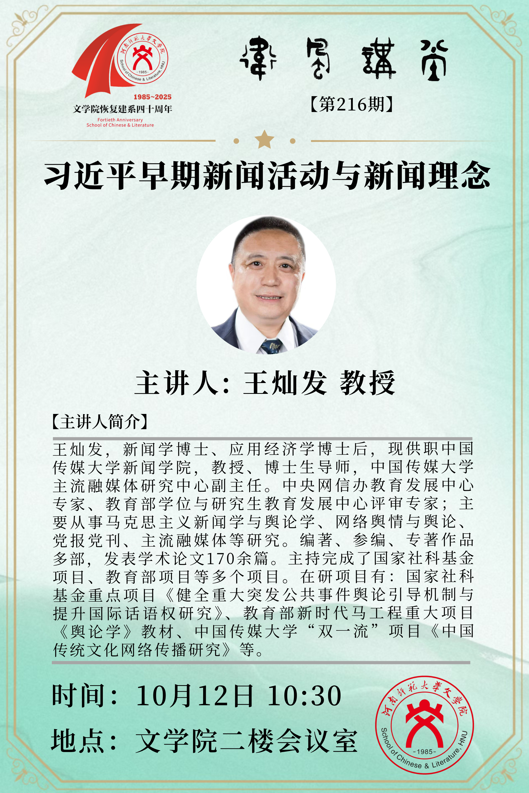中国传媒大学王灿发教授讲座预告