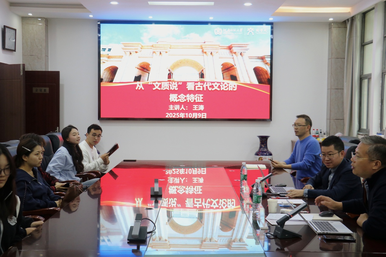 陈鹏对王涛的分享表示衷心的感谢。他指出,此次讲座不仅为古代文论概念研究提供了新路径,更启发了师生在学习研究古代文论时要立足历史语境还原概念本义,深化了师生对古代文论概念特征的理解,有效推动学院在古代文学领域的相关研究。