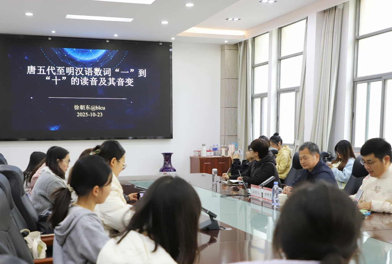 10月23日上午,北京语言大学徐朝东教授应邀做客“卫风讲堂”,于崇文楼二楼会议室为学院师生作题为“近代官话语音研究的材料与方法”的学术报告。讲座由古代汉语教研室主任孙志波教授主持,学院40余名学生参与学习。