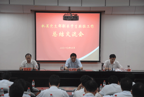 张建国部长首先对四年来我校机关党支部联系学生班级工作进行了总结,从主要做法、工作体会两个方面作了简要回顾,并对今后的工作提出了三点希望和要求:一要深入转变观念,增强机关党组织的育人意识;二要不断创新工作模式,提高机关党组织的育人水平;三要继续加大督促力度,量化机关党组织的绩效考核。