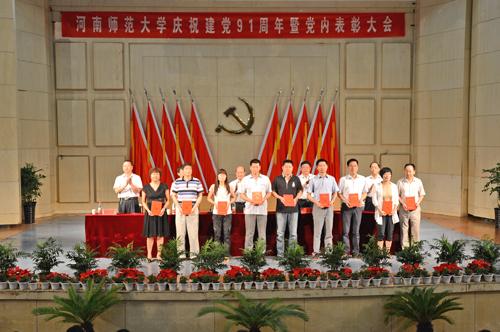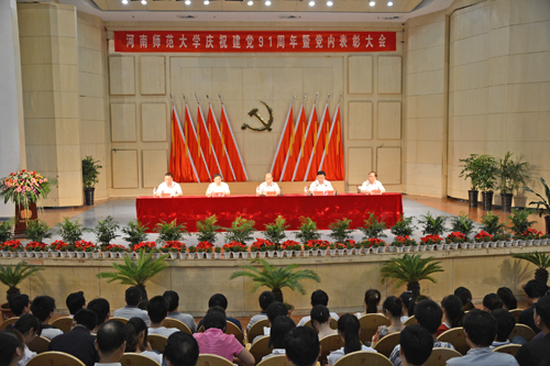6月29日上午,庆祝建党91周年暨创先争优表彰大会在我校音乐厅隆重举行。校党委书记周铁项出席会议并发表讲话,校党委副书记、工会主席王海旺,副校长王新生、黑建敏出席大会;先进党支部代表和全体先进个人,各单位党员干部代表及学生党员代表共470余人参加会议。大会由校长焦留成主持。