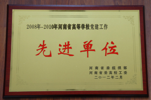 在第二十次全省高校党建工作会议上,我校被中共河南省委组织部、省委高校工委授予“2008-2010年高等学校党建工作先进单位”荣誉称号。