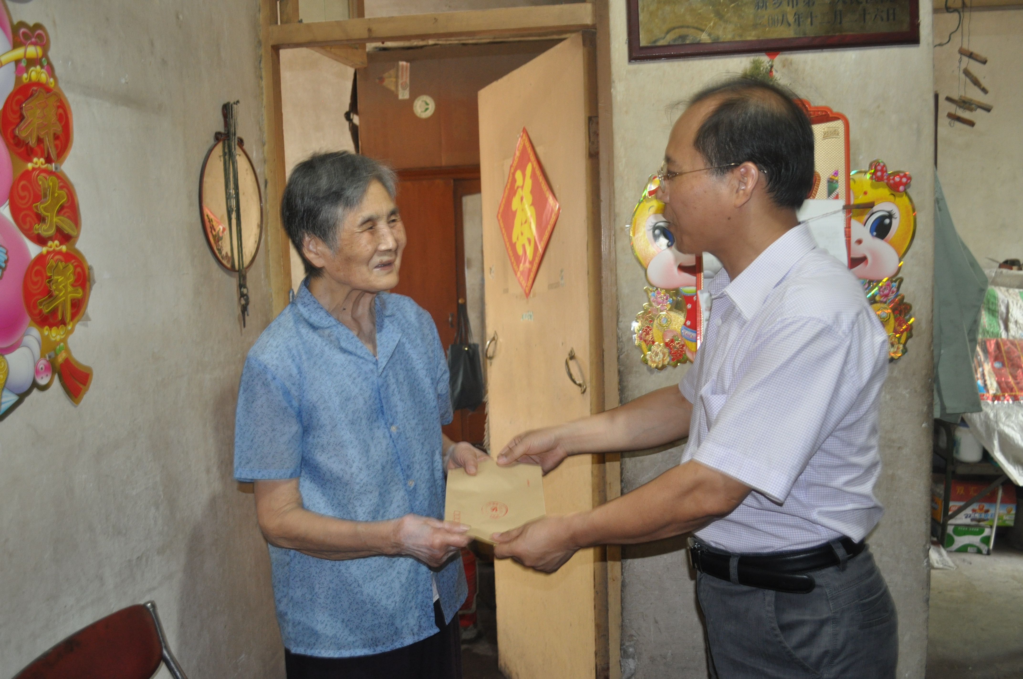 在退休党员梁声翕老人家中,张建国部长向老人表达了节日的祝贺,将中共中央组织部开具的10000元党费收据交到了老人手中,对她无私奉献的精神给予了高度赞扬;离退休职工党总支书记王淑婷转交了梁声翕老人刚刚获得的“河南省教育系统十佳关心下一代工作者” 荣誉证书,对她热心捐助大学生和关心下一代所做的贡献给予了积极评价。在离休老党员黄新峰和石风老人家中,慰问组回顾并肯定了他们为民族解放、新中国成立和社会主义建设事业以及学校发展做出的贡献,表示要传承和发扬老一辈的优良传统,真心实意、全力以赴地为老同志服好务。在老党员们家中,慰问组仔细询问了他们的身体和生活情况,叮嘱老同志照顾好身体;随后,又走访了部分生活困难的老党员,并向他们送上了慰问品和慰问金。