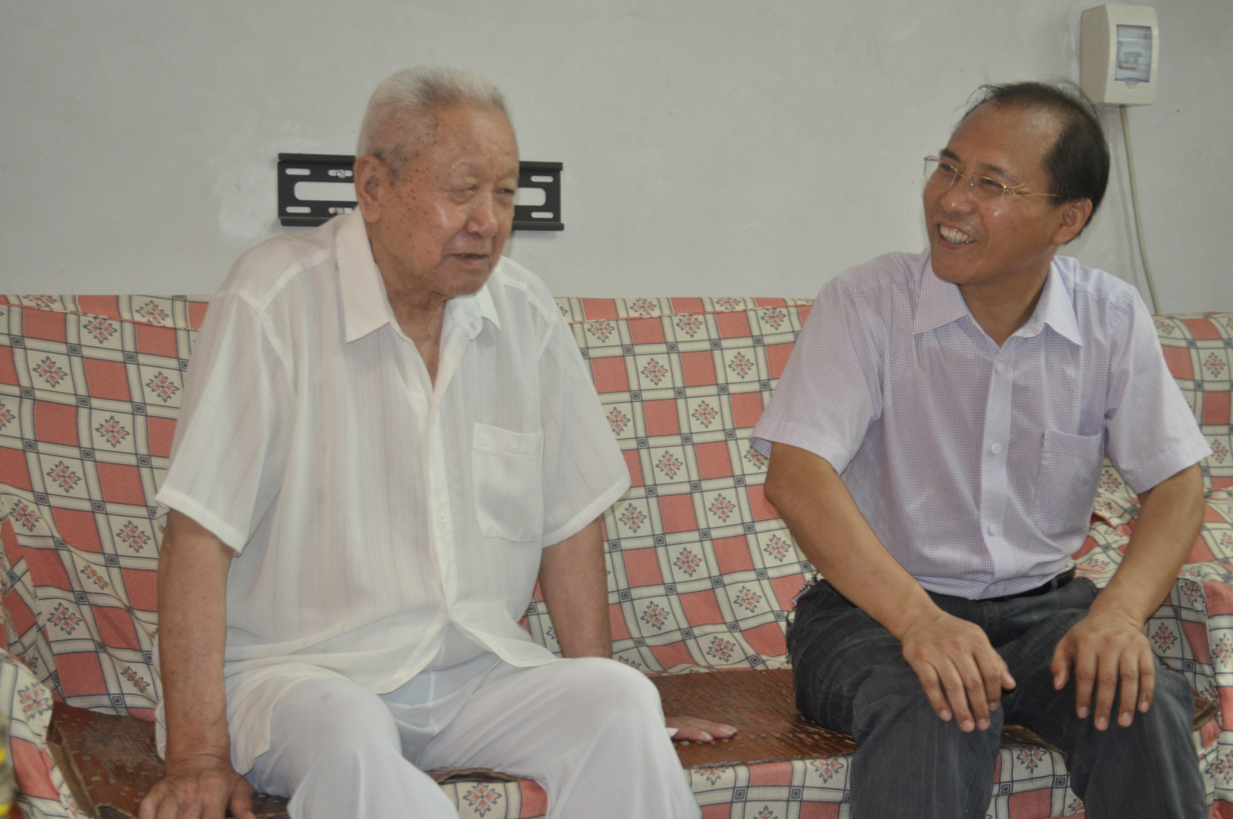张建国部长与黄新峰老人聊天