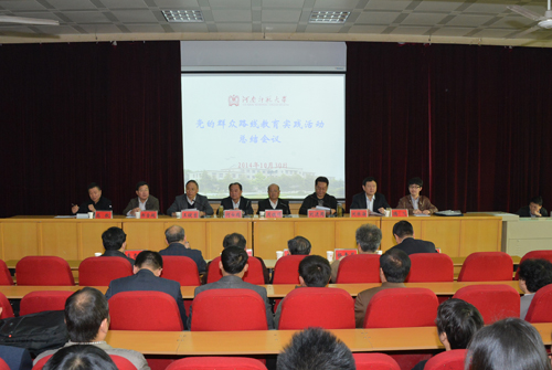 周铁项指出,党的群众路线教育实践活动开展以来,学校党委高度重视,坚持高标准、严要求,确保活动取得扎实实效。一是统筹协调,科学谋划,有力有序推进活动的开展;二是学习教育,征求意见,确保找准问题;三是查摆问题,开展批评,触及思想灵魂;四是经过整改落实,建章立制,确保活动取得成效。通过开展教育实践活动,全校党员干部坚定了理想信念,促进了作风转变,解决了学校发展中的突出问题,推动了学校事业的发展。