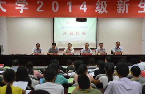 我校举行2014级新生党员培训班开班典礼 王海旺副书记在典礼上介绍了师大的历史和优良传统,明晰了组织开展新生党员提前到校进行培训工作的意义,并对2014级全体新生党员提出了三点希望,勉励他们自觉坚定理想信念,发奋练就过硬本领,充分发挥表率作用。 生命科学学院2012级学生安东代表在校生党员发言,畅谈了新生党员培训班对自己成长成才的影响,呼吁2014级新生党员要抓住机遇,奋发有为。文学院2014级学生胡蓉蓉代表全体新生党员郑重承诺,一定会珍惜机会,努力提高,积极发挥新生党员的先锋模范作用。 开班典礼结束后,马克思主义学院 此前,2014级新生党员还集体参加了新学期升国旗仪式。 对新生党员提前一周进行集中培训,是我校党建工作的一项品牌活动,自2010年开始至今已有五年的探索实践。参加过培训的新生党员普遍认为,他们的入党动机进一步端正,理想信念更加坚定,党员意识持续增强,先锋模范作用的发挥更加主动积极。“我是党员,向我看齐;模范带头,从我做起”不断成为每一个新生党员的自觉承诺和践行标准。 (董文可/文 宣传部 刘海燕/图) 王桂兰副校长为新生党员作专题辅导报告 王桂兰副校长从“前赴后继、可歌可泣的奋斗史”、“艰难曲折、成效卓越的探索史”和“从小到大、由弱变强的壮大史”等三个方面回顾了党的光辉历程,指出党在93年的奋斗探索中找到了有中国特色的新民主主义革命、社会主义改造和社会主义建设三条道路,形成了毛泽东思想和中国特色社会主义理论体系两大理论成果,认识了人类社会发展、社会主义发展和共产党执政的三大规律。她强调,党的厚重历史告诉了我们这样一个宝贵结论,即马克思主义有用、社会主义有戏、中国共产党有功。作为学生党员,一定要牢记光辉历史、弘扬优良传统,以模范行动为党的事业增光添彩。 通过聆听此次报告,新生党员们普遍对党的发展历史有了更加清晰的认识,进一步强化了紧跟党走、争做表率的意识,坚定了走中国特色社会主义道路的信念。 (董文可) 张建国部长作国际形势问题专题辅导报告 报告围绕当前国际形势的主要特点、我国的周边环境和我国的对外政策及军事理念等三个方面展开,阐释了在世界政治多极化不断发展、经济全球化势不可挡、和平与发展依然是时代两大主题的国际背景下,我国在世界大格局中所处的方位和地位,分析了我国发展面临的机遇和挑战,指明了我国应该坚持的对外政策及军事理念。 新生党员普遍反映,张部长的报告内容丰富,讲解深入浅出,语言风趣幽默,为帮助同学们认清世界局势、理解中国发展战略提供了重要指导。 (董文可)