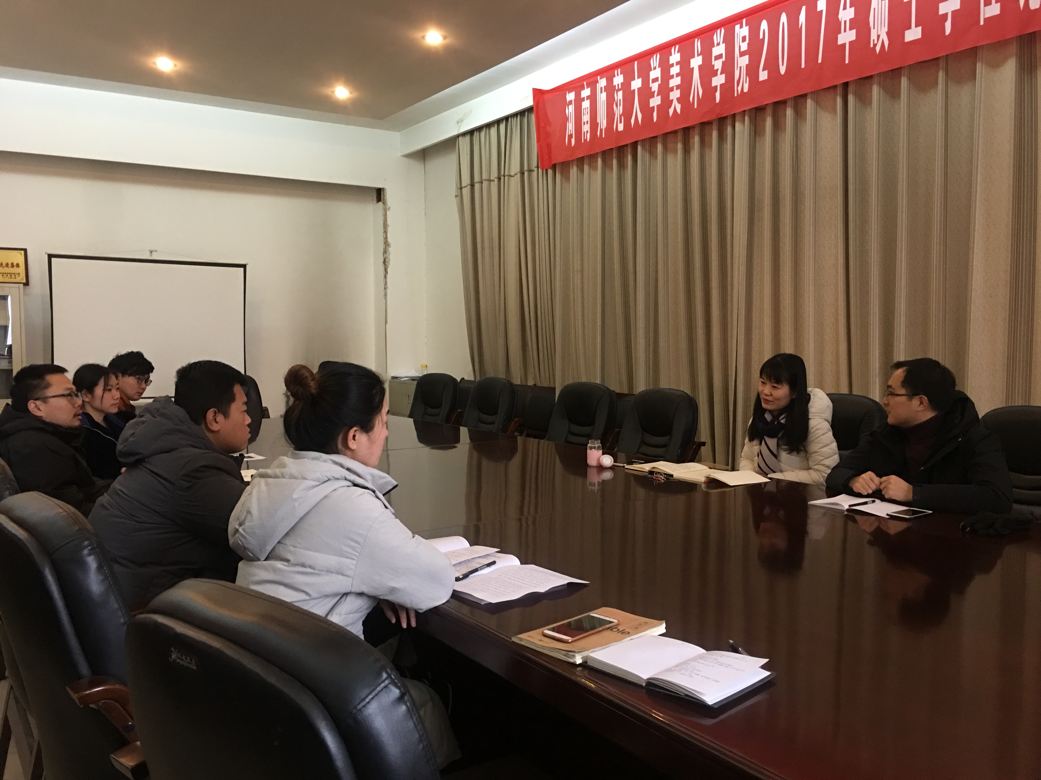 1月25日上午,美术学院党委在学院党建活动室召开2017年度基层党支部工作述职交流会。学院党委书记孙红艳、副书记王文豪、各支部书记参加了交流会。会议由学院党委办公室主任姜文杰主持。
