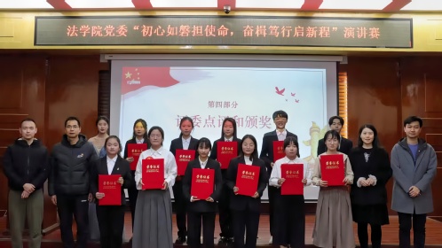 此次演讲比赛为法学院党委“初心如磐担使命,奋楫笃行启新程”系列活动之一,有助于提升学生的表达能力与综合素质,将红色精神融入到日常生活中,激发了我院师生的爱国情怀与民族自豪感。