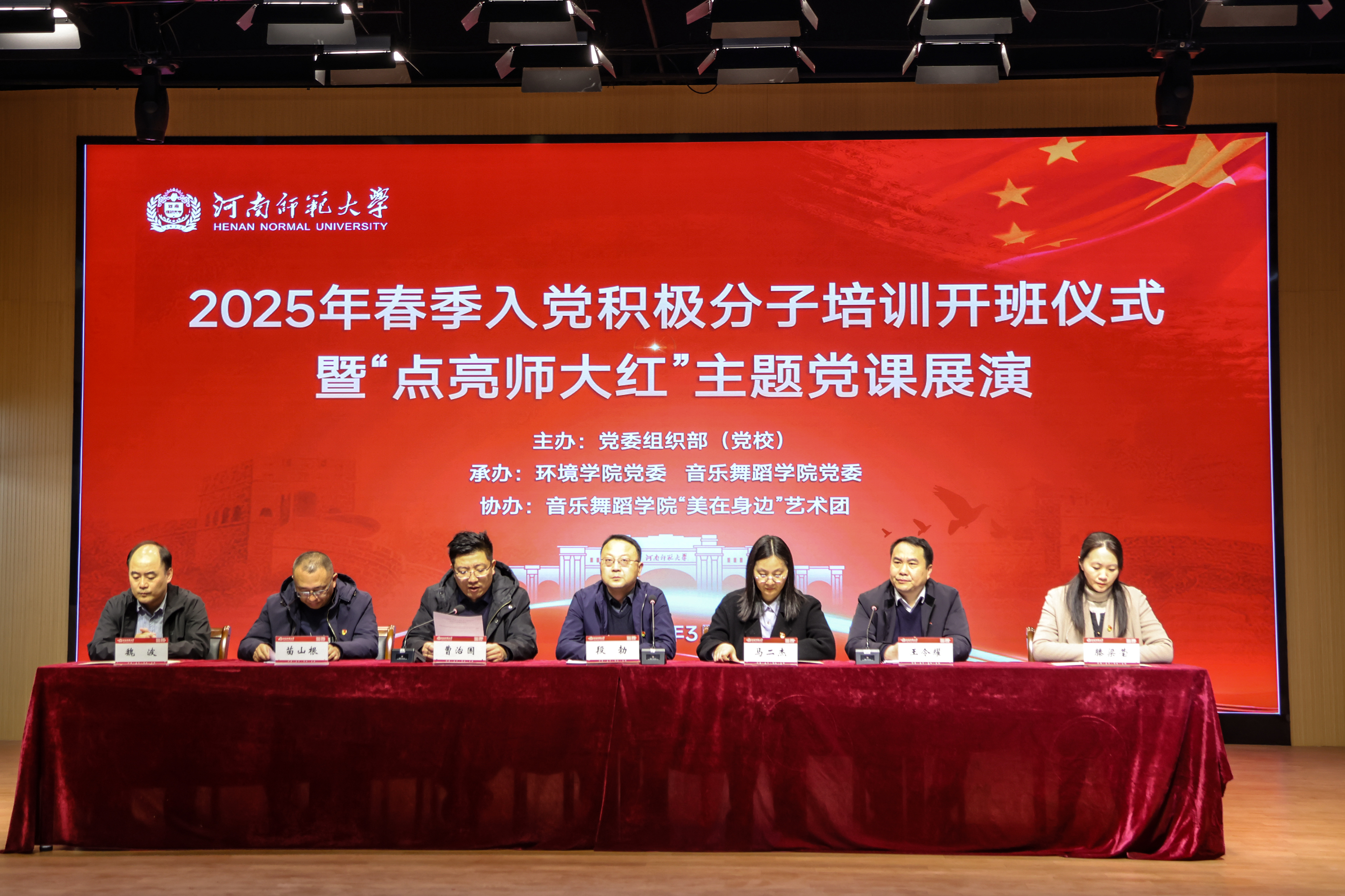 3月22日上午,由校党委组织部(党校)主办、环境学院党委、音乐舞蹈学院党委承办的2025年春季入党积极分子培训开班仪式暨“点亮师大红”主题党课展演在学苑餐厅三楼青益空间顺利举行。校党委组织部(党校)、校团委、环境学院党委、音乐舞蹈学院党委相关单位负责人出席活动,各分党校近1400名入党积极分子通过线上线下相结合的方式参加了本次活动。活动由环境学院院长曹治国主持。